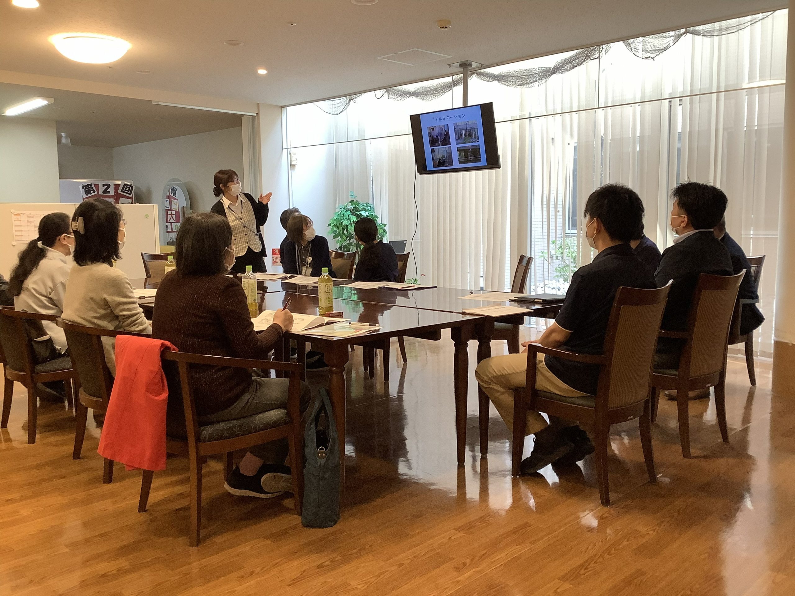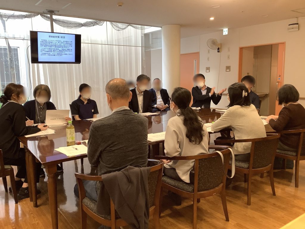 施設運営のご報告や、スライドを使用して行事や個別活動、防災訓練の様子を報告させていただきました。