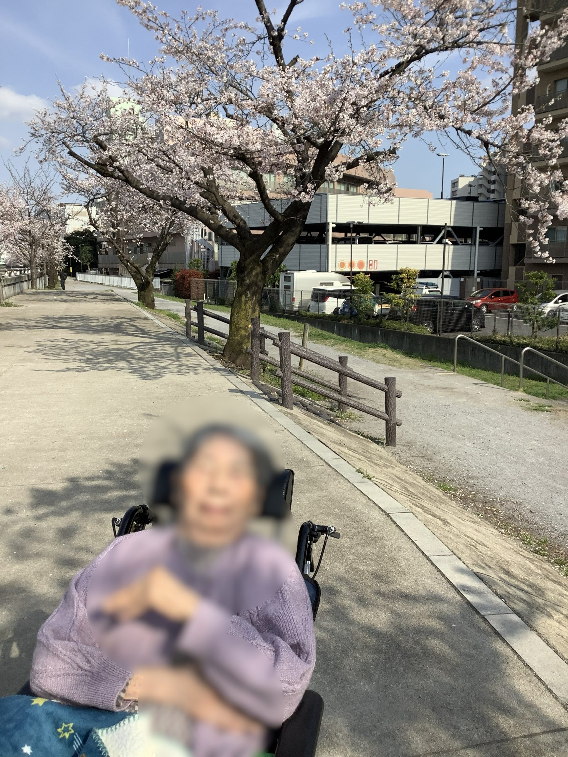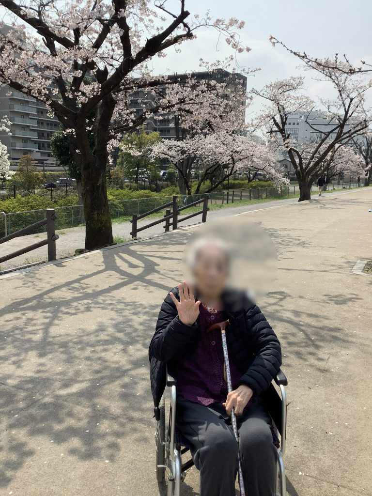 今、桜が満開です。順番に新河岸川の川沿いへお花見に行っていただいています。
