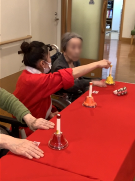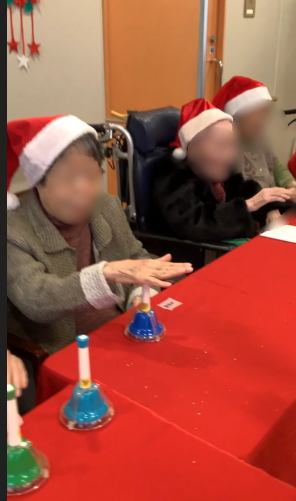 入居者様&職員による「きよしこの夜」のハンドベル演奏に挑戦しました。この日のために、練習を積み重ねてきました。最初は「やったことがないから大丈夫かしら?」「難しい~!緊張する」とおっしゃっていましたが…練習を重ねるたびに、ご自身のパートをしっかり覚えている方もいました。ハンドベルたくさんの練習のかいもあって演奏は”大成功”でした✨