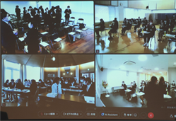 翠会ヘルスケアグループ本部と成増厚生病院、和光病院、陽和病院、 行橋記念病院、八幡厚生病院の6会場をつなぎ、234名の昨年度中途⼊職者および 2026年4⽉1⽇付の新⼊職者が出席しました。